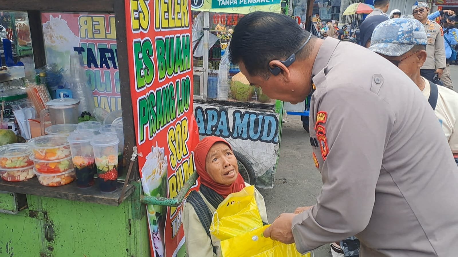 KABAG SDM POLRES SUMEDANG SERAHKAN SANTUNAN PADA KEGIATAN GERAKAN PANGAN MURAH