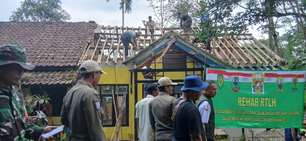 Sumedang Sumedang-news.web.id Dalam rangka memperingati Hari Juang TNI AD ke-80 Tahun 2025, Kodim 0610/Sumedang bersama Baznas Kabupaten Sumedang terus mempercepat pelaksanaan program Rehabilitasi Rumah Tidak Layak Huni (RTLH). Sinergi dua lembaga ini kembali menghadirkan harapan baru bagi masyarakat kurang mampu untuk mendapatkan hunian yang layak, aman, dan sehat.