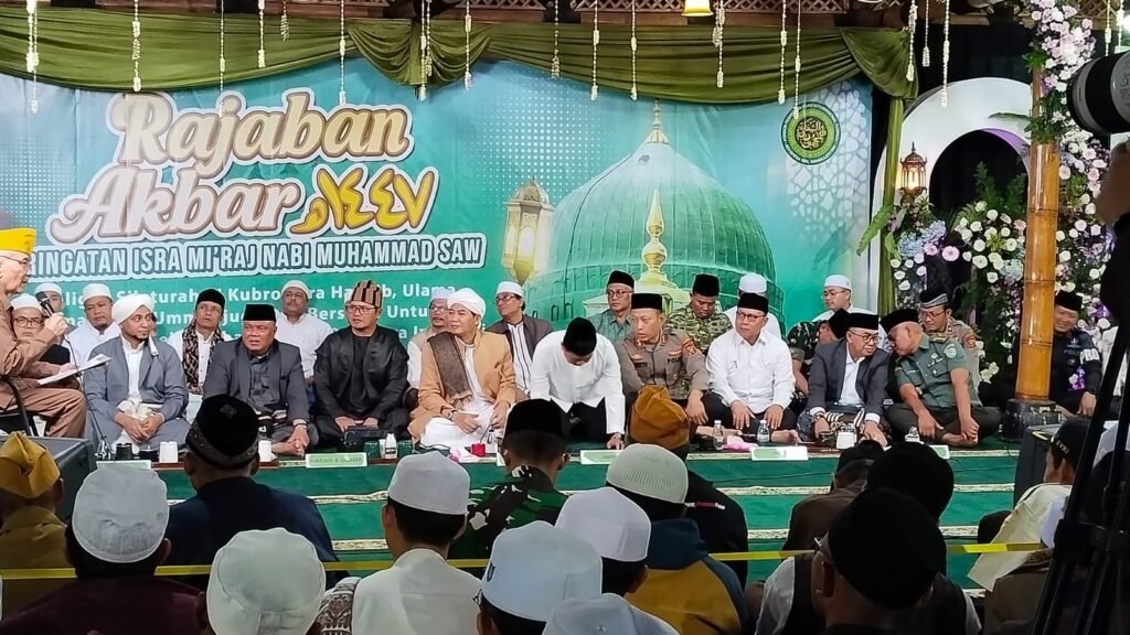 Sumedang-news.web.id Kapolres Sumedang AKBP Sandityo Mahardika, S.I.K., menghadiri kegiatan Peringatan Isra Mi’raj Nabi Muhammad SAW 1447 Hijriah Tahun 2026 yang dirangkaikan dengan Silaturahmi Qubro para Habib, Ulama, dan Umat serta doa bersama untuk keselamatan dan keberkahan bangsa Indonesia. Kegiatan tersebut dilaksanakan pada Minggu, 1 Februari 2026, bertempat di Pondok Pesantren Islam Internasional Terpadu Asy-Syiffa Walmahmudiyah, Dusun Simpang, Desa Haurngombong, Kecamatan Pamulihan, Kabupaten Sumedang.