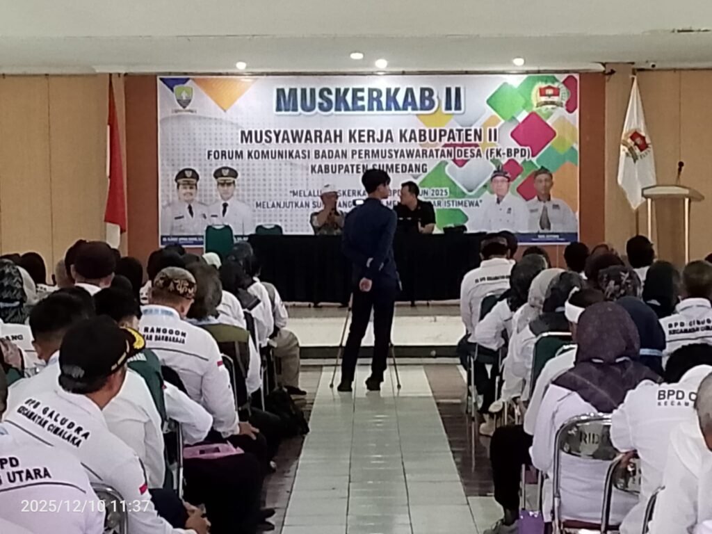 Sumedang —Sumedang-news.web.id Kegiatan Muskerkab Forum Badan Permusyawaratan Desa (BPD) Kabupaten Sumedang mendadak menjadi perbincangan hangat setelah muncul dugaan ketidakjelasan aliran dana dalam pelaksanaan agenda organisasi tersebut. Meski kegiatan ini disebut menerima hibah pemerintah daerah sebesar Rp100 juta, setiap desa tetap diwajibkan membayar iuran Rp250.000 untuk mengikuti acara.