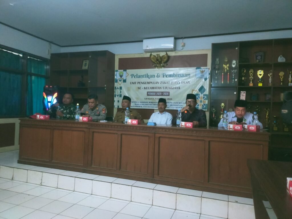 Sumedang-news.web.id Badan Amil Zakat Nasional (BAZNAS) Kabupaten Sumedang menyelenggarakan kegiatan Pelantikan dan Pembekalan Pengurus Unit Pengumpul Zakat (UPZ) Desa se-Kecamatan Ujungjaya yang dilaksanakan pada Senin 9 Februari 2026, bertempat di Kecamatan Ujungjaya, Kabupaten Sumedang.
